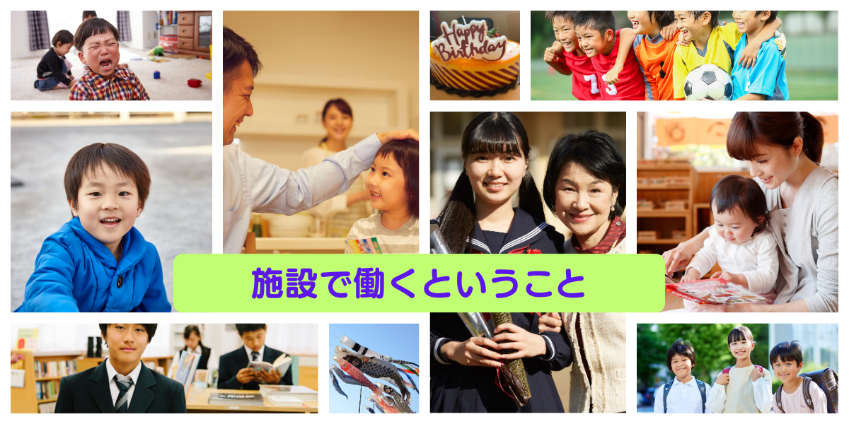 | 「児童福祉施設職員」という仕事の意義と喜び こどもの成長には、毎日の何気ない日常のなかで、さまざまなやりとりを安心して重ねられる身近な大人の存在が必要です。何らかの事情で施設で生活することになったこどものそういう存在になっていくことが、児童福祉施設職員として働く意義となります。 いつしかこどもが大人になり、「あの頃は・・・」とお互いに昔をふりかえるとき、その成長に深い喜びを感じます。施設ごとに大切にしている理念や施設風土、空気感の違いはありますので、ご自分が目指したい方向性を考えながら、いくつかの施設を見学されることをお勧めします。 こどもの成長に長く関わり続けていく。 ともに悩み、成長する。 育ち合っていく働きです。 |